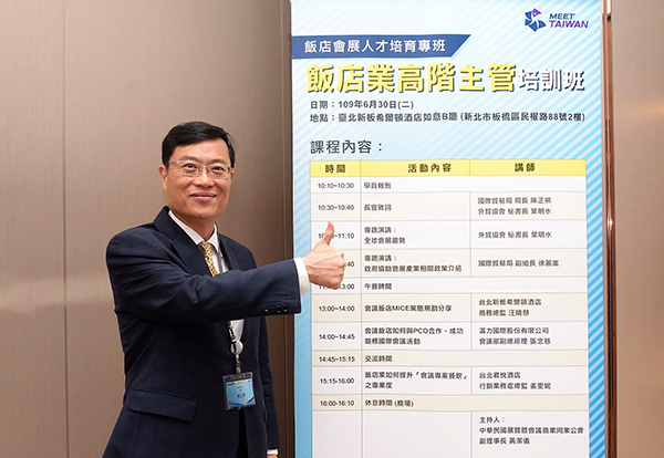 【臺北訊】由經濟部國際貿易局指導,外貿協會辦理的「會展人才培育與認證計畫」多年來致力於推動臺灣會展產業,並辦理多項會展相關課程及講座。近年來,飯店漸成為各國際會議舉辦之場地首選,今年度本計畫規劃辦理數場與飯店相關之會展課程,第一場「飯店業高階主管培訓班」於6月30日在台北新板希爾頓酒店辦理,現場雲集飯店業及會展界菁英,研討飯店會展趨勢。