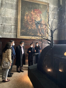 駐義大使李新穎等人親臨參觀本屆展覽時,由國美館副館長汪佳政親自接待,介紹展覽理念及團隊在疫情下籌備展覽的情形。在參觀過程中,也讓李大使了解到本屆展覽主辦單位及工作團隊如何因應大會宣布延期至 2021 年,以及在短短幾個月間將各種行政作業化繁為簡,並在面對國際疫情嚴峻的狀況下,盡力保護出國人員健康安全及兼顧各項防疫措施與布展工作進度。