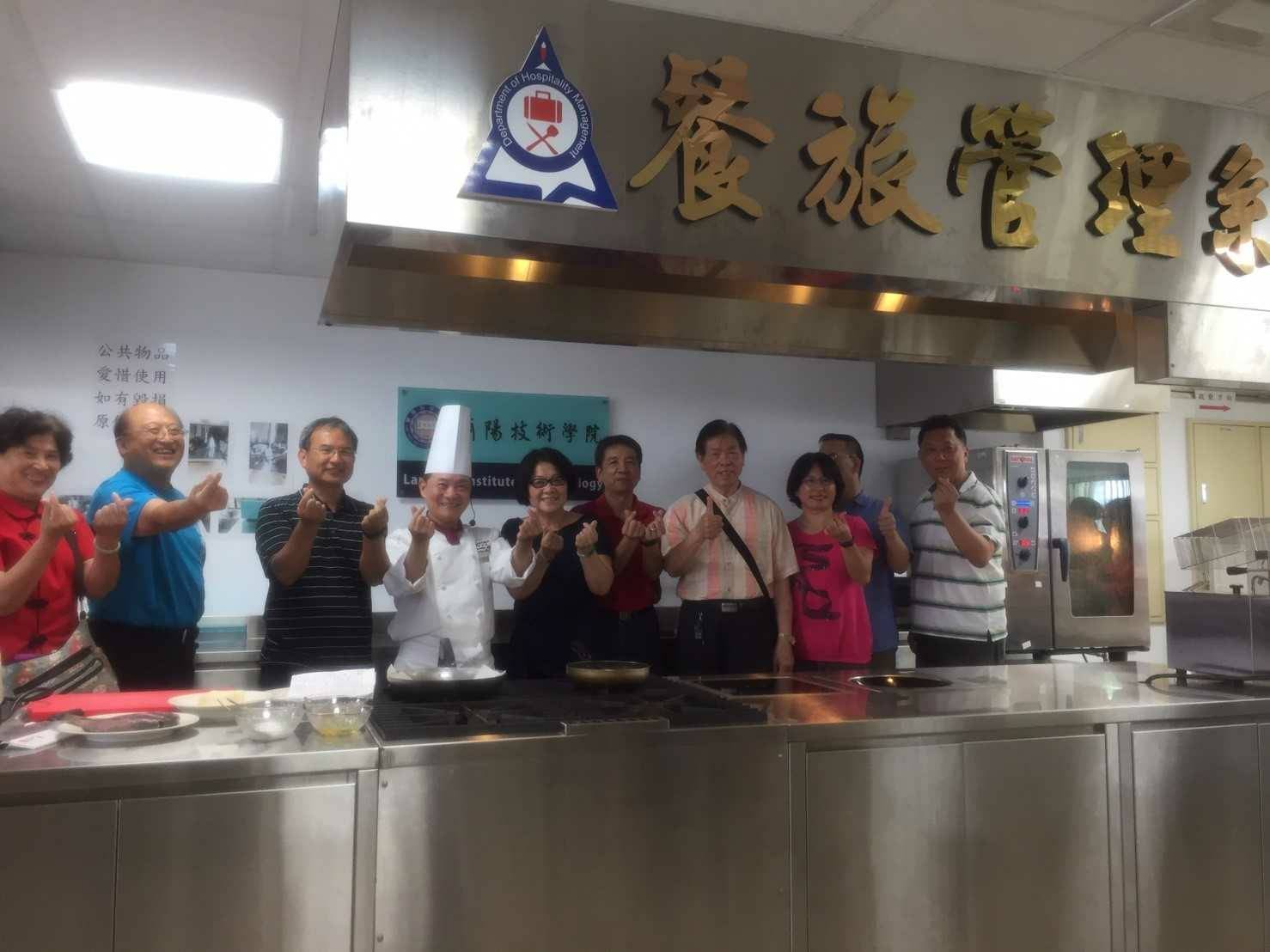 蘭陽技術學院更特別安排在今年的夏季海鮮推出之際,邀請台灣名廚阿基師親自下廚,以道地的頭城在地食材,製作「馬告龜山島角蝦」、「海菜鹿角菜」與「石花凍甜點」,阿基師並將在現場示範一道獨家私房菜「夏日海洋之戀」—乾烹黑喉配綠醬,給現場與會的同學及樂齡大學學員共同分享,品嚐到阿基師美味手藝的學員們讚不絕口。