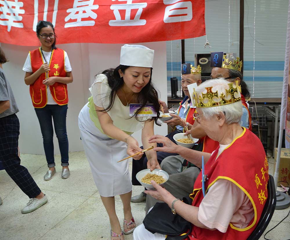 台灣在地美食大甲乾麵秉持社會責任服務地方,捐贈922份大甲乾麵給華山基金會,並推出「大甲乾麵愛心禮盒」響應公益,並於今日上午舉辦「獅爺獅奶大〝甲〞乾麵祝壽塔」活動,現場呈現另類的乾麵祝壽塔,由大甲乾麵的吳佩芳執行長親自烹煮,長輩吃得津津有味,蕭爺爺說起最難忘的生日是吃火雞大餐及長壽麵慶生,今天有這麼多人一起幫他過生日非常開心,華山基金會也幫長輩戴上象徵獅子座的星座皇冠,以及祝壽的壽桃和生日卡片,祝福這些獅爺獅奶們生日快樂。