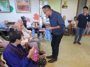 鄉長黃錫墉今(20)日到鄉內聖嘉民老人長照中心探訪長者,閒話家常,並演奏手風琴炒熱氣氛,現場馬上表演「補破網」、「望春風」給阿公阿嬤們聽,大家聽著彷復回到屬於自己的少男少女時代,還意猶未盡地喊「安可」,鄉長也即興再彈奏一首「思慕的人」,一旁的大隱村村長范奇勳也拿麥克風跟大家合唱,鄉立幼兒園的學童也到場祝賀,藉由萌趣十足的歌舞表演「歡樂年華」,陪伴耆老度過熱鬧又充滿溫情的一天。