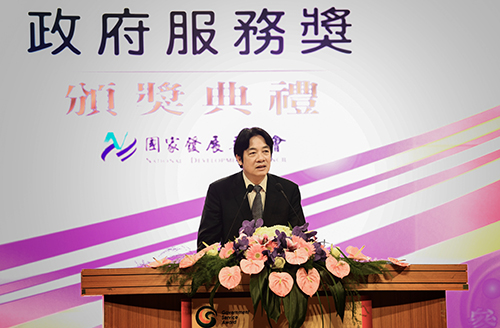 賴院長表示,肯定國發會舉辦「政府服務獎」,對公務機關及同仁的辛勞,給予肯定。本屆獲獎機關包括中央及地方單位,並均具備三項特點:第一,運用科技展現創新精神,提供好的服務;第二,獲獎機關的同仁對政府依法的要求,皆奉獻付出,相當可貴;第三,具備開放政府的精神。