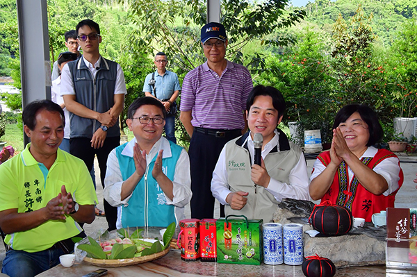 賴清德感謝劉櫂豪邀請他來台東,一償想品飲台東特色紅烏龍的願望,有關農業的相關問題,行政院目前都正在積極的推動。他也肯定,劉櫂豪在立法院擔任黨團幹事長期間,積極推動許多法案,例如與游錫?前院長所推動的有機農業專法,來獎勵有機小農、農業保險增加理賠、實際耕作者就可加入農保資格等等。