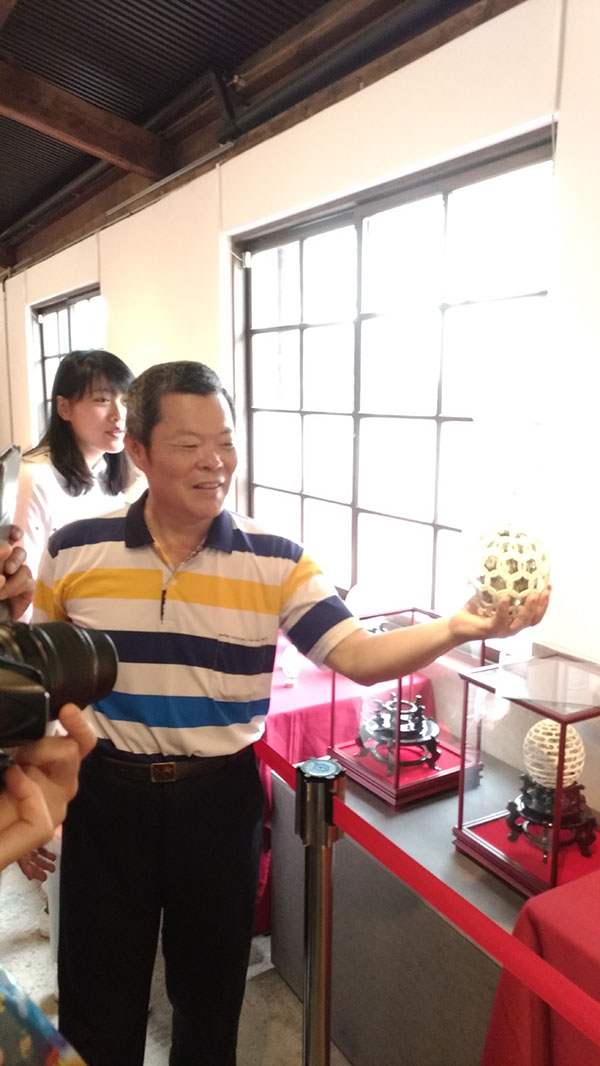 太平在地藝術家廖啟鎮從事蛋雕創作迄今已30餘年,他認為藝術應該是生活的、平易近人的,因此以日常隨手可得之鳥蛋、雞蛋、鴨蛋加上一些得之不易的禽鳥蛋等作為創作媒材,而作品題材更以廖老師從小到大周遭的生活經驗、看到的人、事、物著手創作,例如:農耕、花鳥、廟宇的龍柱、鳳凰吉祥圖騰以及幾何思緒等等;老師展示「七層蛋中蛋」,耗時一年完成,層層堆疊、各自旋轉,觀展民眾無不嘖嘖稱奇,讓民眾瞭解藝術不是高高在上,而在你我周圍。
