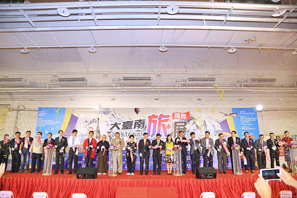 【臺南訊】「大臺南國際旅展」今(22)日起一連四天在臺南南紡世貿展覽中心登場,亞洲國家的觀光單位也前來設攤,參與攤位300個,適逢議會總質詢時間,臺南市副市長王時思特別代表市長黃偉哲出席致意,另包含交通部觀光局副局長張錫聰、臺南市政府觀光旅遊局副局長林國華,主辦單位臺南市旅行商業同業公會理事長蘇榮堯與獲邀的國內外貴賓等,一起熱熱鬧鬧宣布一年一度的旅展正式開幕。