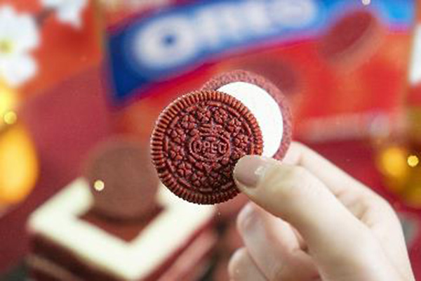 內外兼具的OREO紅絲絨蛋糕口味更可以於過年期間裝點餐桌,增添家裡的喜氣,招待客人有福氣,開啟新年的「紅」運。自用、送禮兩相宜,在春節期間,接在年年有「魚」、步步「糕」升等喜氣洋洋的年菜後,OREO象徵「紅運當頭」的紅絲絨蛋糕口味、「心想事成」的香草口味、「大吉大力」的巧克力口味、「十全十莓」的草莓口味、「雙喜臨門」的雙倍夾心口味、「好事花生」的花生醬和巧克力口味、「百事黑皮」的黑白巧克力口味。在頻繁拜訪親友的年節期間,OREO家族就是最甜蜜、鴻運的伴手禮。