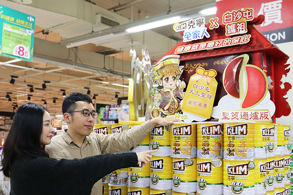 經擲筊徵得白沙屯媽祖同意,結緣聯名新篇章!全台限量16,000罐的克寧高鈣全家人營養奶粉不只罐身印有Q版媽祖,還附上張張誠心過爐的貼紙,就像平安符一樣保庇相隨,並有數位活動。讓大家在防疫期間也能祈福保平安,感受媽祖婆滿滿的的慈愛與祝福。