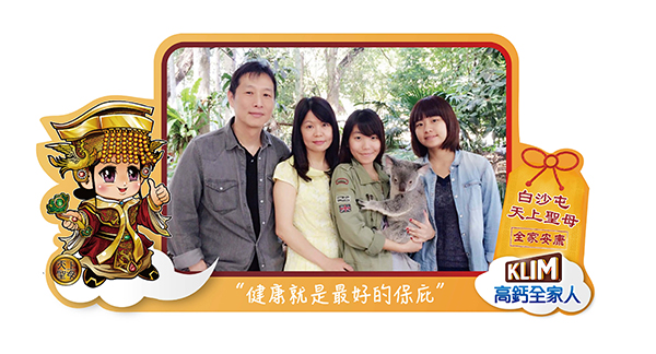 克寧高鈣全家人營養奶粉,三月上市DHA新配方,提供給家人五夠力!包含保護力(優質乳蛋白)、好活力(維他命C&B群)、消化力 (日本專利益菌生)、思考力(DHA)及晶亮力(葉黃素),一杯就能照顧全家人健康。與白沙屯媽祖慈悲、堅定庇佑台灣人的信念相似,值得民眾信賴的克寧同樣盼以高品質奶粉保護、照顧全家人的健康。