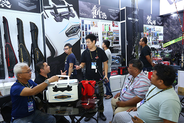 圖:國外買家們熱絡詢問釣具區廠商產品資訊(資料照片)。