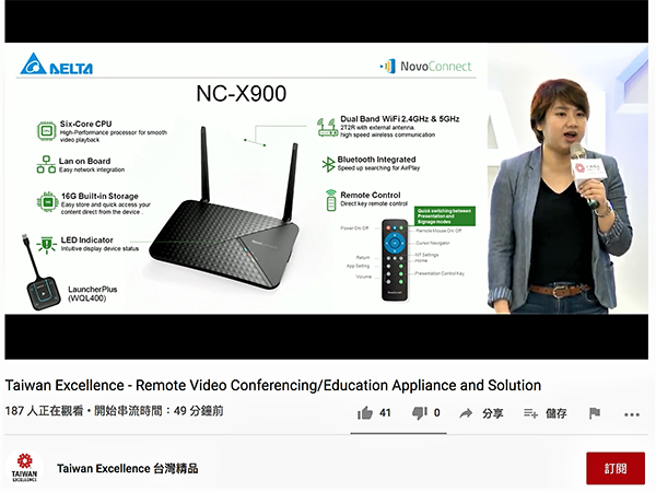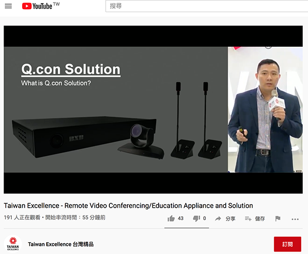 圖:貿協於台灣精品youtube頻道舉辦「遠端視訊會議線上記者會」,邀請卡訊電子介紹自動影像追蹤視訊會議系統,能提升視訊會議流暢度。