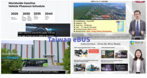 本次發表聚焦在電動巴士、充電及智慧管理系統3大主題,包含優先取得臺灣「電動大客車示範計畫」的成運汽車,自主開發電巴並通過ARTC電車底盤及整車認證,目前已在嘉義市實際運行,其開發的電巴電池解決方案和同級的德國和中國車款比較下,有更強的續航力及更輕的重量。車輛中心集結國內18家廠商共同研發全臺第一輛電動SAE Level 4自駕小巴WINBUS、研華科技與越南VinBus合作開發「智慧電巴管理系統」,目前已在越南進行測試,預計六月在越南進行路測。創奕能源的專利液冷式鋰鐵儲能電池系統使電巴安全性再升級,目前已與泰國車用零組件商合資共推泰國電巴市場等。另外,累積半世紀連結器技術研發經驗,成功跨足電動車領域的健和興,以提供4,000多種高效能充電槍驚艷國際買主。奇美車電研發智慧電動巴士的ADAS(先進駕駛輔助系統)核心部件,可提供車道偏移警示、前方防撞警示、駕駛員狀態偵測等多樣化功能。整合資訊流、商流、金流,開發出國內市占率超過七成智慧巴士付費系統的宏碁智通,也是這次發表的亮點廠商。