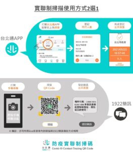 為讓實聯制能更方便民眾使用,北市府在中央1922簡訊實聯制的基礎上,採用多元整合模式,讓場所QR Code一碼二用,民眾可以選擇台北通APP掃碼,以網路完成實聯登記,也可使用手機中具掃碼功能之相機(LINE疾管家內的掃描功能亦可行),以簡訊回傳1922。防疫實聯制整合服務於6月1日正式全面啟動,台北市各大公有場館及連鎖商家也都陸續加入,共同攜手提供民眾便利掃碼的生活場域。