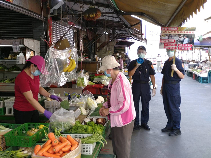 【澎湖訊】本縣疑似出現第2例確診病例,經調查該案曾至北辰市場等處採買物資,為避免民眾前往空間較壅擠的傳統市場「恐慌式購物」時,難以保持安全社交距離,而提高「病毒透過人與人的傳播」風險,本分局特於今(31)日前往北辰、文澳市場等處持續宣導,請買菜民眾「一次購足、買好就走」,以降低染疫風險。