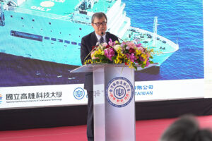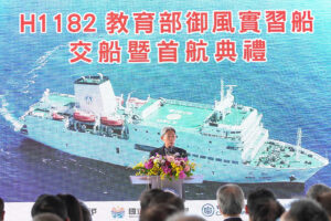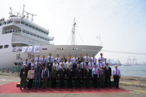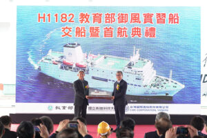 【高雄訊】台灣國際造船股份有限公司(以下簡稱:台船公司,股號2208)承造教育部「御風」實習船,於今(26)日假台船公司高雄廠區舉行交船暨首航典禮,由教育部鄭英耀部長及台船公司黃正弘董事長共同主持,「御風」實習船於110年由台船公司得標承造,歷經設計、開工、安龍及下水等重要建造節點,並經海上公試驗證各項性能後,於今年初完成驗收及交船。「御風」實習船於今日交船典禮後,立即離港首航至日本,正式一肩扛起國家賦予的重任,並在國立高雄科技大學團隊規劃營運下,以培育更多我國海洋產業的優秀人才。台船公司由衷地祝福,「御風」實習船就如同她深具意義的名字,掌握方向,航向世界,一帆風順。