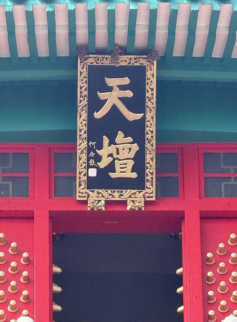 接受日本降書的何應欽將軍,於民國72年親筆題寫「天壇」匾額,高懸圓頂正中軸線之上,為壇場最核心的精神象徵。時隔32年,前主委謝義雄董事長再度整棟全面整修與粉刷,使天壇風華再現。民國103年3月22日,時任高雄市的陳菊市長,與前謝主委共同題寫「風調雨順,國泰民安」,為天壇注入新的時代印記。歷經世代傳承與修護,如今已成為家喻戶曉的台灣秘境聖地。