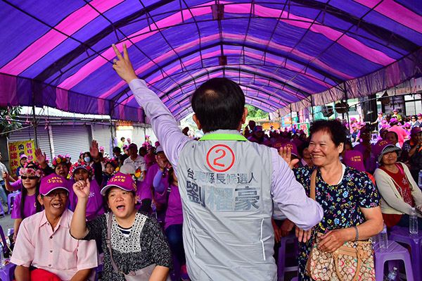 今(11)日台東縣長候選人劉櫂豪接連出席,民進黨提名卑南鄉民代表候選人陳治東,與以鄉長一職保證劉櫂豪當選農產外銷依然順利的卑南鄉長許文獻競選總部成立,站台致詞。劉櫂豪更在許文獻鄉長競選總部成立現場與立法委員陳瑩、鄉長許文獻、台東市長候選人洪宗楷、賴坤成前市長擊戰鼓展現團結氣勢。劉櫂豪表示,過去四年大家看見卑南鄉的改變,但真正的不同從十一月二十四號開始,請鄉親給他一個機會帶領改變台東。