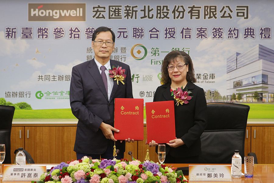 第一銀行統籌主辦宏匯新北(股)公司新臺幣33億元聯貸案簽約典禮於6月25日下午舉行,由第一銀行總經理鄭美玲、宏匯新北董事長許崑泰及總裁黃坤泰共同主持,本聯貸案由臺灣土地銀行及農業金庫共同主辦,合作金庫、台灣中小企業銀行、彰化銀行一同參貸,獲得銀行團熱烈支持及踴躍參貸,成功完成募集。