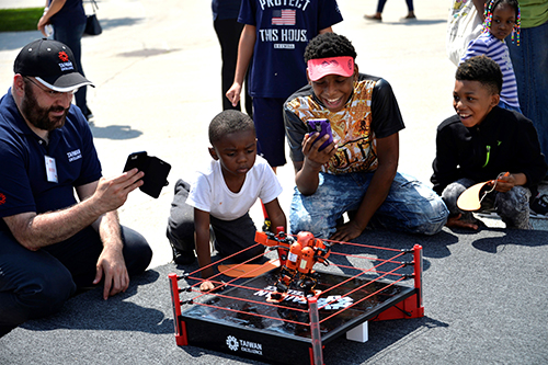 圖:雷虎機器人吸引眾多孩童與青少年爭相體驗。