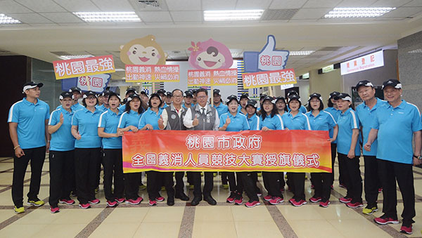 桃園市長鄭文燦今(11)日上午於市府,出席「107年全國消防暨義勇消防人員競技大賽選手授旗儀式」時表示,競技大賽是平時消防訓練及教育成果的展現,今(107)年的全國消防暨義勇消防人員競技大賽分為消防人員競賽組及義消組,各有3個及4個競賽項目,期勉消防及義消同仁全力以赴,奪得佳績;市府會持續推動消防革新,提供消防及義消同仁更多的支持。