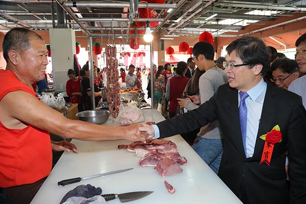 李市長致詞表示,下營市場改建深受下營鄉親期待,下營市場位於下營的蛋黃區,在上帝廟前廣場,附近店家密集,又在公園旁,但是過去因為建物老舊生意不好,很多攤商都搬走,甚至閒置了一段時間,後來市府決定改建,由於這塊地一部分是上帝廟所有,另一部分則是國有土地,感謝上帝廟同意無償提供,加上議員在預算上的支持,改建才有辦法順利進行。