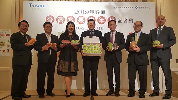 為了協助臺灣的農產食品拓銷國際市場,行政院農委會委託外貿協會於農曆春節前的採購旺季,在香港永安百貨彌敦道店B1的「臺灣食品廣場」舉辦「2019年春節臺灣水果嘉年華」,自1月10日至21日止共計12天,展售蜜棗、茂谷柑、黑珍珠蓮霧、珍珠芭樂、鳳梨釋迦、鳳梨、葡萄、木瓜共8種熱門節慶臺灣水果,營造喜迎豬年?發發發?旺旺旺的好兆頭。1月11日於香港半島酒店舉行臺灣水果嘉年華記者會,香港消費者可前往各大超市通路如永旺?百佳?惠康?一田及永安百貨等,選購來自臺灣的冬季水果。