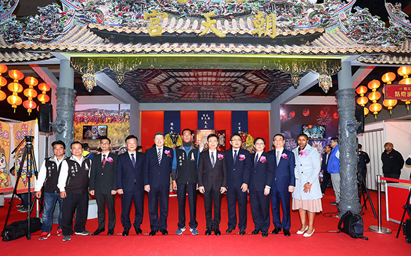 圖:貿協董事長黃志芳恭迎媽祖駐駕世貿一館年貨展。